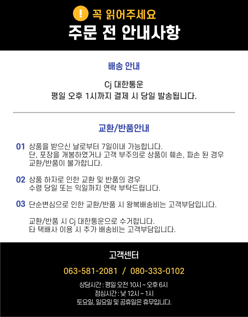 (반품/교환 시 사이트에서 반품/교환 신청 후 상품을 발송해주시기 바랍니다.)
